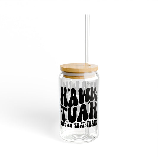 Hawk Tuah Spit on That Thang Funny College Style Sipper Glass, 16oz Gift for Her